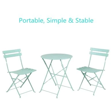 Our Grand Patio Parisian stylish outdoor bistro set includes garden table and chairs, which are outdoor powder coated. Our garden furniture sets are concise, beautiful and sturdy. These pub table and chairs also has plastic cushions on foot and the joint for protection. This outside furniture is certainly the quality modern outdoor furniture you can’t miss.These metal constructed outdoor table and chairs adopt a bright color, which creates a unique artistic style. This metal outdoor furniture gives you the most wonderful view while enjoying yourself.
