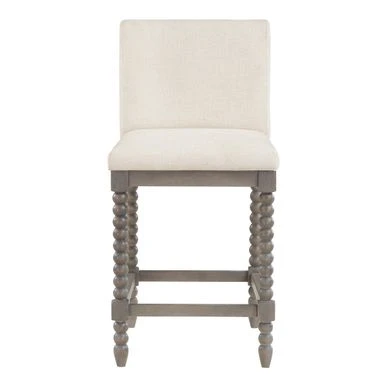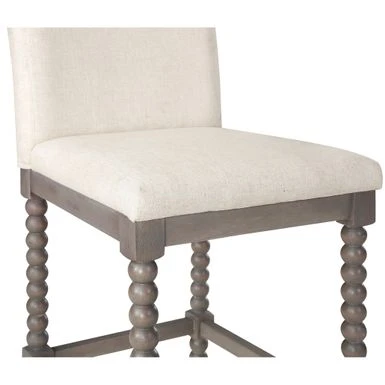 Add beautiful Farmhouse charm to any kitchen island or counter height peninsula with our 26″ Spindle Counter Stool. The padded seat and slight curved back will offer chic comfort for hours of dining and conversation. Solid wood construction and light washed finish provides durable lasting beauty. Some assembly required.