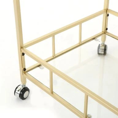 Crafted according to the highest standards from tempered glass and iron, this bar cart is the perfect accessory for entertaining. Sure to impress your guest, it also has numerous other uses beyond serving, and can function as a mobile display stand.