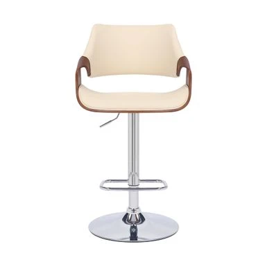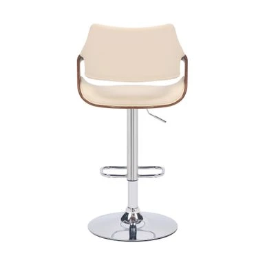 - COLOR PREFERENCES – The Aspen Stool is available in your choice of a black base with black or grey faux leather upholstery or a chrome base with cream or grey faux leather upholstery with walnut wood accents. Â Â Â