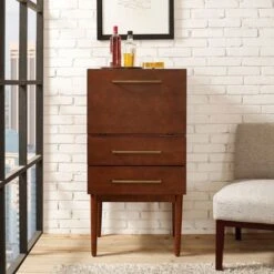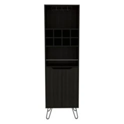 FM Furniture Leeds Bar Cabinet With 2 Concealed Shelves, 2 Open Shelves, And 6 Liquor Cubbies – MDF