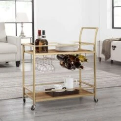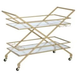 FirsTime & Co. Gold Jemma Geometric Glam Bar Cart, Metal Frame, Glass Top – Metal – Gold