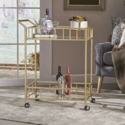 Falon Indoor Modern Bar Cart With Tempered Glass By Christopher Knight Home – N/A – Gold