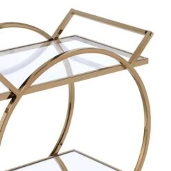 Metal Serving Cart With Tempered Glass Shelves And Tubular Angled Handles, Gold And Clear – Metal