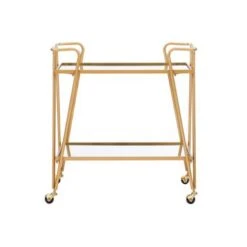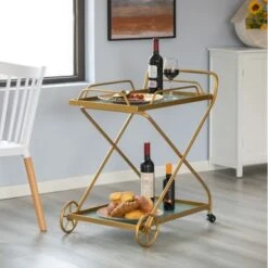 Vintiquewise Metal Wine Bar Serving Cart With Rolling Wheels, Wine Rack, And Glass Holder – Black