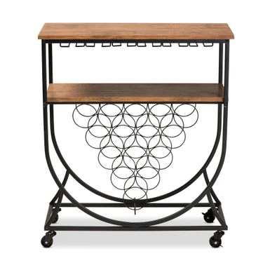 Baxton Studio Dania Antique Vintage Industrial Metal And Wood Mobile Wine Bar Cart – Iron – Black