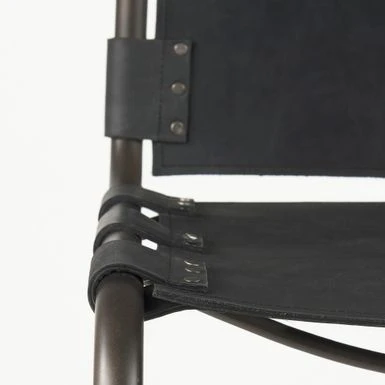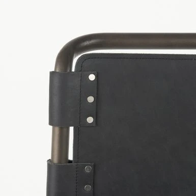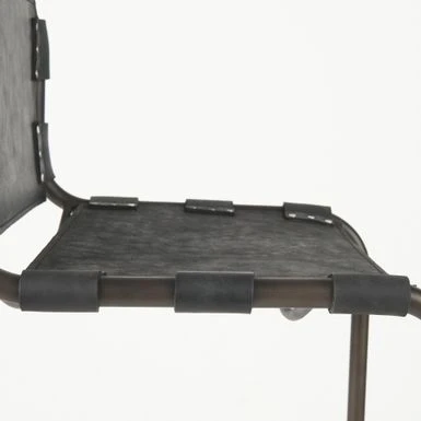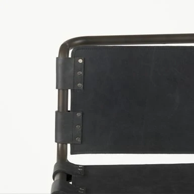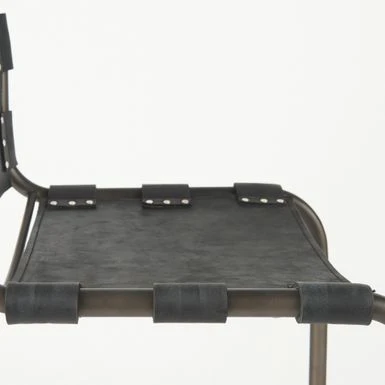 - In addition to sturdy construction, the Berbick also flaunts a superior, gun metal gray polish on the metal frame that is complemented by the distressed black leather seating, and adds to the visuals of this piece.Â