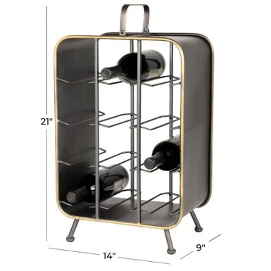 - Large standing wine rack with handle measures 13.5″L x 9″W x 20.5″H and weighs 7 lbs; holds 12 standard wine bottles