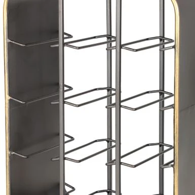 Display and organize your wine bottles with this industrial wine bottle shelf displayed on your table top. Display your wine bottles with style and make everyone thirsty with envy. Looks stylish in your living room or kitchen as a way to display and serve your favorite wines. Designed with rubber stoppers at the base that prevent scratching furniture and table tops, as well as sliding around. This item comes shipped in one carton. Suitable for indoor use only. This wine rack can hold up to 12 standard size wine bottles. Designed with an industrial theme.