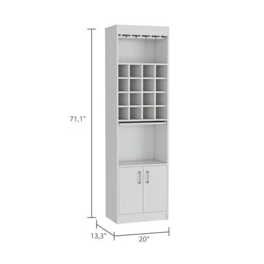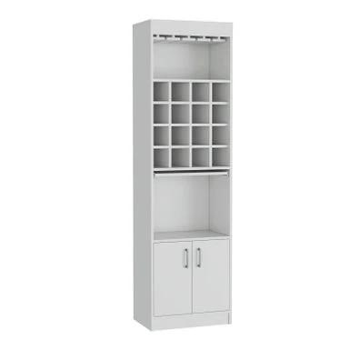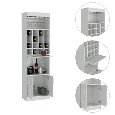 The Boahaus Wells Bar (White) is the perfect addition to your home for entertaining guests. The sleek design and dark volcano finish create a stylish aesthetic that is sure to impress. With 16 cubbies for wine or liquor, a glass rack, and ample storage space, this bar has everything you need to keep the party going. The concealed serving table allows for easy preparation and serving of drinks, making it a must-have for any host or hostess.