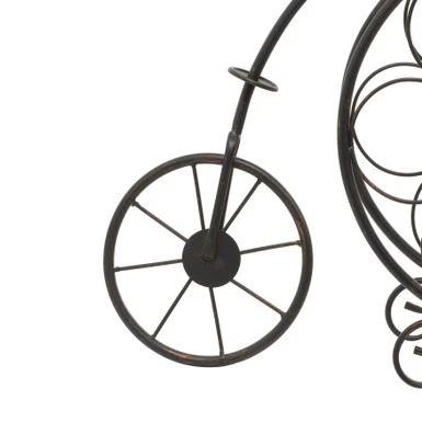 - Holds 7 wine bottles conveniently in an adorable penny farthing bicycle equipped with feet stand and handle bars