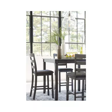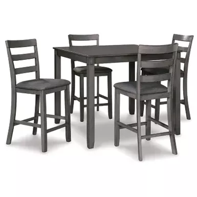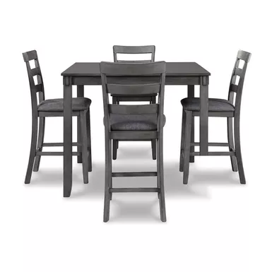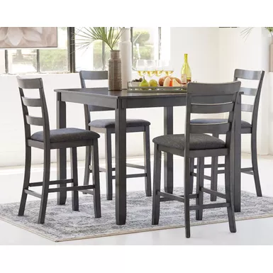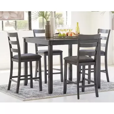 - Includes counter height table and 4 barstools
