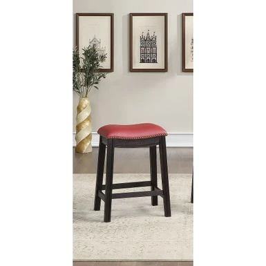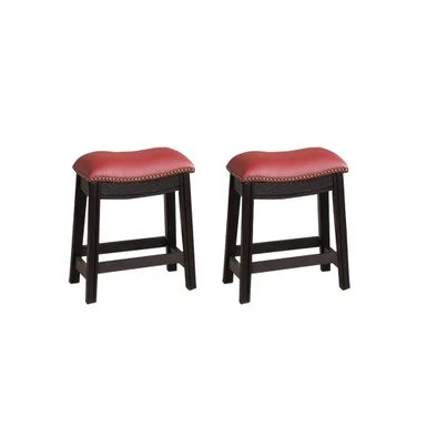 Up top, the ergonomic saddle seat is vintage nailhead trim, pluses feet pedals for much comfort. The perfect pick for any modern farmhouse-inspired space. The stool features faux leather upholstery, its seat is padded with high-density foam to keep you comfy all day.Â