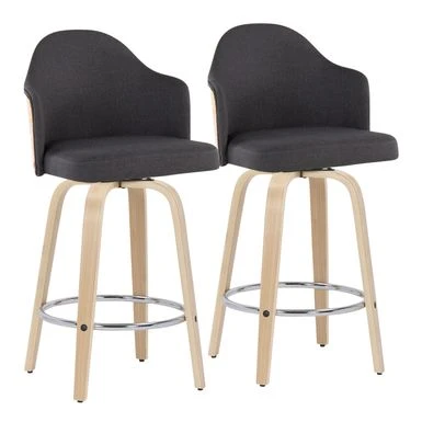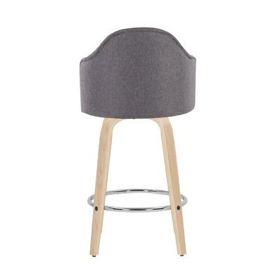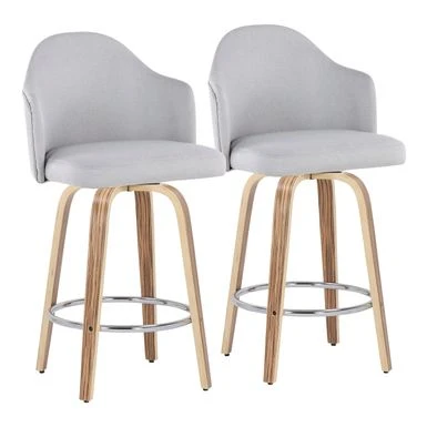 The contemporary charm of the Valsatra Counter Stool combines sturdy construction with aesthetic appeal. Sleek fabric upholstery is accented by wood legs and a built-in footrest. Available in a variety of color and pattern combinations.