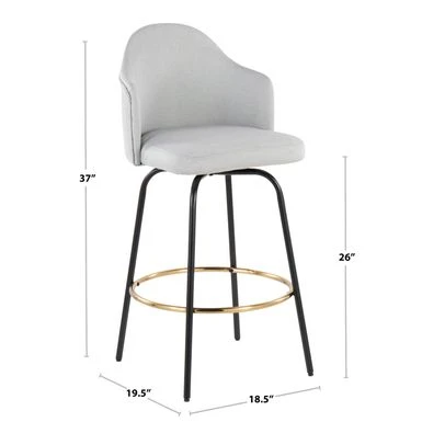 - Black or gold metal legs with round gold footrest