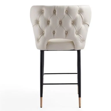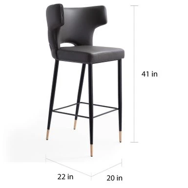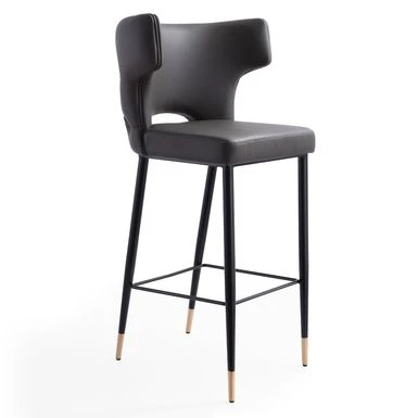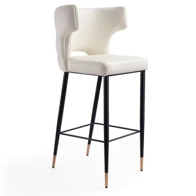 Bring just the right pop of vintage elegance to your dining or lounge space, with this eye-catching barstool. Sleek and supple leather envelopes a low-profile frame, while a gently contoured back offers ergonomic support. Atop the gracefully slender legs rests a cushioned, upholstered seat, perfecting the glam vibe.