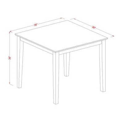 - Table measures 36 inches long x 36 inches wide x 36 inches high