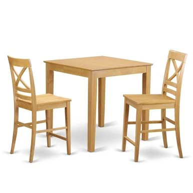 - Three-piece wooden pub table set for two, consisting of a table and two chairs