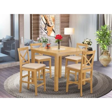- Five-piece counter-height set includes one table and four matching chairs