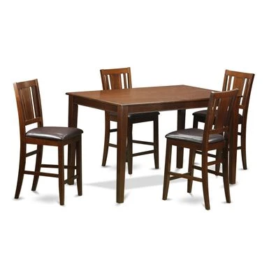 - Five-piece pub table and chairs features a minimalist design with a table and four chairs