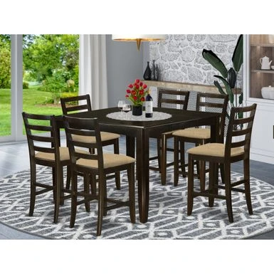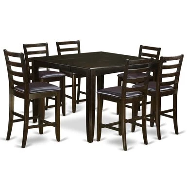 East West Furniture Modern 7-piece Pub-height Table Set – A Table And 6 Chairs In Cappuccino Finish (Seat’s Type Options) – FAIR7-CAP-LC