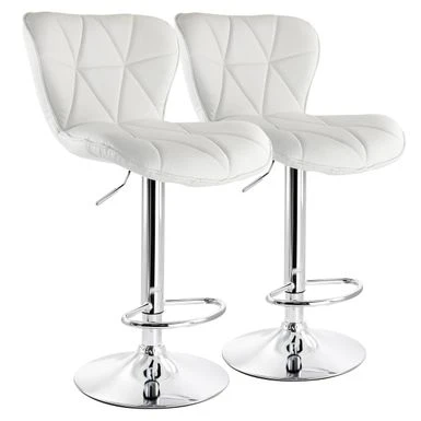 Make a modern statement in your home with the Elama 2 Piece Diamond Tufted Faux Leather Adjustable Bar Stool in White with Chrome Base. This sleek and stylish stool features a unique shape for maximum comfort and a swivel base for easy movement. The adjustable height allows you to customize the stool to your preferred height, making it perfect for any counter or bar. Crafted from high-quality metal, this stool is built to last.