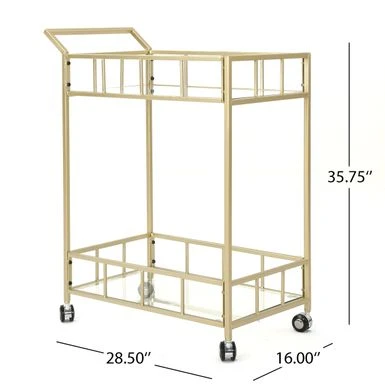 DIMENSIONS: Choose an accessory that is the perfect size for you and your furniture. This bar cart is 28.50″ W x 16.00″ D x 35.75″ H. You will love how much your space can transform with the simple addition of this charming bar cart.