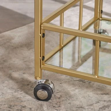 Entertaining your guests just became a whole lot easier and a lot more stylish with a bar cart of exquisite design. Perfect for effortlessly serving hors d’oeuvre and drinks to your guests, our cart is a must-have for any indoor or outdoor get-together that you may have. Made with a durable frame and stunning tempered glass shelves, you can’t go wrong with this accessory. This finished with convenient rolling casters and beautifully open slatted shelves that make any hosted party a memorable one.Â