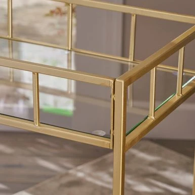 TEMPERED GLASS: This bar cart features tempered glass shelving that offers a gorgeous translucent look. This glass is made to be stronger and safer than regular glass, making this more resistant to breakage and shattering. Â
