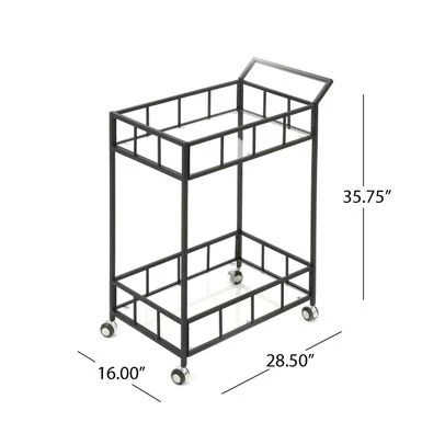 Entertaining your guests just became a whole lot easier and a lot more stylish with a bar cart of exquisite design. Perfect for effortlessly serving hors d’oeuvre and drinks to your guests, our cart is a must-have for any indoor or outdoor get-together that you may have. Made with a durable frame and stunning tempered glass shelves, you can’t go wrong with this accessory. This finished with convenient rolling casters and beautifully open slatted shelves that make any hosted party a memorable one.Â