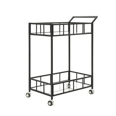 MODERN DESIGN: With clean, precise lines, our bar cart is the ideal modern accessory for your indoor or outdoor space. Finished with a sleek metal frame and tempered glass shelves, this cart not only offers a chic, minimalistic look but also provides incredible structure.Â