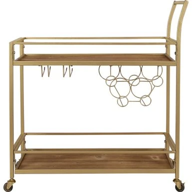 Elevate your entertaining game with the FirsTime & Co. Francesca Bar Cart. With a sophisticated gold metal frame and natural wood shelves, this versatile cart can hold up to 6 wine glasses and 5 wine bottles on its second tier, while the top shelf provides ample space for drinks and snacks. With four wheels for easy maneuvering, this cart can also double as a coffee cart, dining storage, or end table. Measuring 32.5″ in height, 30″ in width, and 13″ in depth, it’s the perfect accent piece for any kitchen or bar.