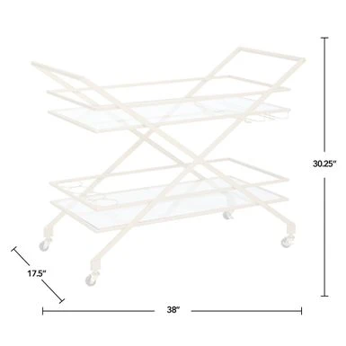 - SIZE MATTERS – Our FirsTime & Co. Gold Jemma Geometric Bar Cart has a 30.25″ height, 17.5″ width, and 38″ length giving you enough room to hold your drinks, wine and snacks as well as making it convenient enough to place in any room.