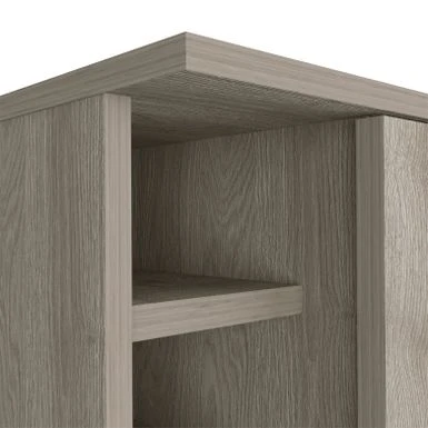 - Features 2 shelved covered by a single door cabinet for added storage