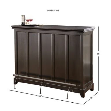 - Bar height dimensions: 42 inches high x 56 inches wide x 18 inches deep