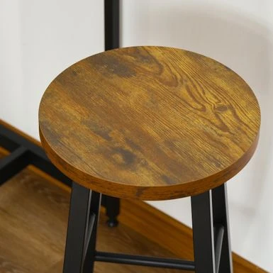 Accent your dining area and seat guests with this industrial-style bar table set. The two-tone rustic wood design and dark steel create an eye-catching piece for your home. 3-tier side shelf provides ample space for storing snacks and magazines. Create a cozy room with this practical table set.