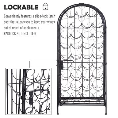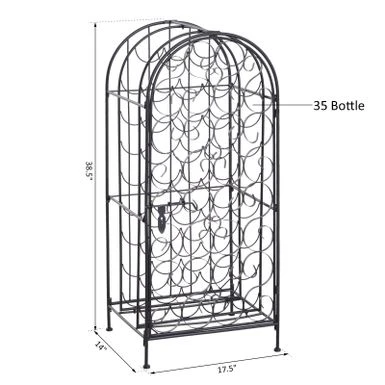 Love wine but don’t have the space for a full wine cellar? Let this HOMCOM large capacity ornate wine bottle organizer lend a hand. Ornate scrollwork with antique bronze finish evokes the artistry of the Renaissance, a fitting setting for your wine. A swirling, elegant iron front door opens onto 35 circular bottle cradles. This wine storage allows for the cork to remain moist and swollen which limits unwanted air contact and keeps your wine in peak condition. This wine rack is compact and convenient and will easily fit in a home bar, kitchen, or living room.
