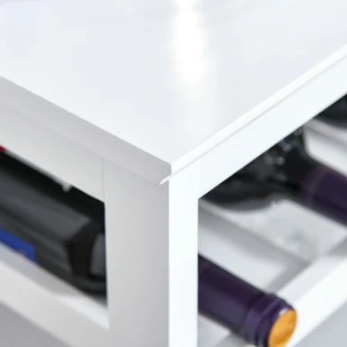 - – 4-bottle wine rack, an open shelf, and a concealed cabinet for storage;