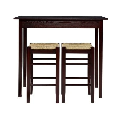 - Includes rectangular table and 2 backless counter stools with Rice Rush/Sea Grass seats