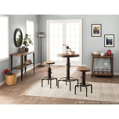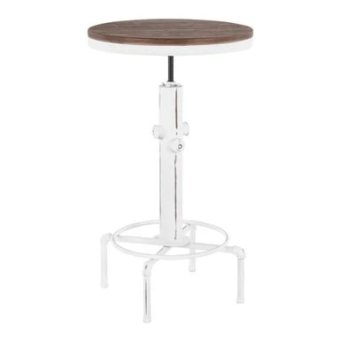 There is no resisting the charm of this fire-hydrant inspired bar table. The Hydra Bar Table features a beautiful combination of wood and metal construction. A sturdy base is accented by a built-in footrest and distressed wood top. Available in a variety of colors, pair with the Hydra Barstool to complete the ultimate industrial look.