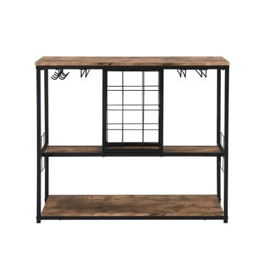 Add a touch of sophistication and functionality to your kitchen or entertainment area with this Industrial Bar Cart Kitchen Bar Cart for Home. This wine rack features three tiers of storage shelves and a specialized rack for storing snacks and bar accessories. The stemware racks and bottle holders add elegance to your space by displaying your wine glasses and bottles. The industrial style of this bar cart, with mixed materials of MDF board and iron frame, creates a rustic flair that will never go out of style.