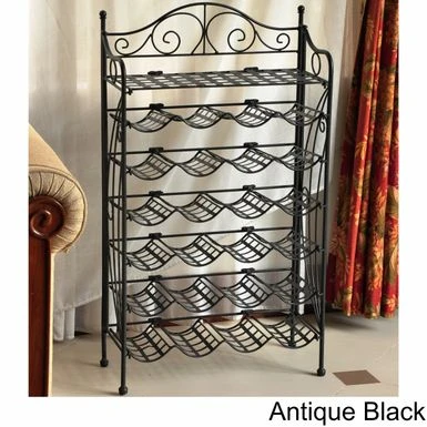 This freestanding wine rack features durable iron construction, keeping your bottles safe and secure. Simple scroll work on the sides adds a decorative touch, while the black color and classic design fit into a variety of traditional and contemporary rooms. Place it in your kitchen, home bar or entertaining area for beautiful wine storage.