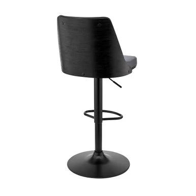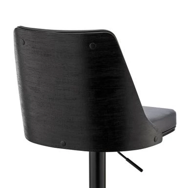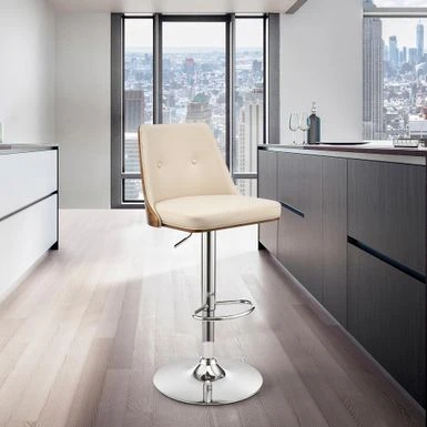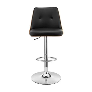 Add a touch of mid-century aesthetics and retro chic glamour to your home with the Jacob Adjustable and Swivel Faux Leather and Wood Bar Stool with Metal Base from Armen Living. The wide seat and ergonomic design provide comfort and relaxation for extended periods, while the adjustable height feature allows you to use this stool at your kitchen island, home bar, or peninsula without worrying about surface height. The swivel function optimizes everyday use or entertainment, keeping everyone engaged regardless of their place in the room. The plush padded and high-density foam seat and backrest rest atop a strong pedestal base that creates a sturdy and comfortable seating experience. Choose from cream or black faux leather with walnut wood and a chrome base or gray faux leather with black wood and a black base to match your style.