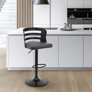 Upgrade your home bar or kitchen island with the stylish and comfortable Khalia Adjustable Swivel Faux Leather and Wood Bar Stool with Metal Base. This mid-century stool features retro chic glamour and is available in your choice of cream or black faux leather upholstery with walnut wood and a chrome base, or gray faux leather upholstery with black wood and a black base. The wide seat and ergonomic design, along with the adjustable seat height functionality and swivel function, make it perfect for any space. The plush padded and high-density foam seat rests atop a strong pedestal base, providing stability and comfort. Assembly is a breeze with clear step-by-step instructions provided. Armen Living stands behind all products sold and offers a 1-year limited manufacturer warranty on all items.