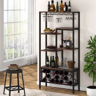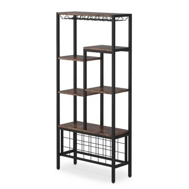 This wine bar cabinet is the perfect addition to any wine lover’s home. With a large capacity for storing both standard and larger diameter bottles, as well as a 6-row wine glass rack and an open shelf for additional storage, this vintage style display wine rack is not only beautiful but functional as well. Made of high-quality engineered wood and a durable metal frame, this sturdy and handsome wine organizer is easy to assemble with all necessary materials included. Don’t hesitate to add this simple overflow wine storage solution to your home today!
