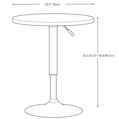 - Stylish chrome lift adjusts table height from 25.5 – 32.25 inches