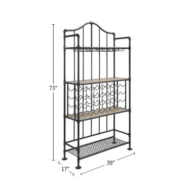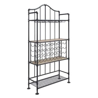 Metal Frame Wine Shelf In Oak And Sandy Black Finish – Oak/Sandy Black