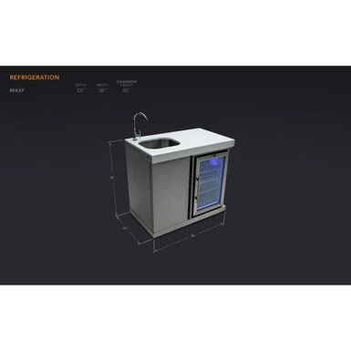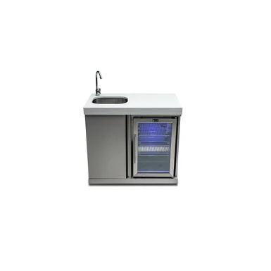 The Mont Alpi beverage center finished with white granite counter top makes a beautiful addition to a Mont Alpi island grill or as a stand-alone beverage center on your patio. It comes standard with an outdoor rated fridge with lights, stainless steel sink with faucet and is made with all 304 marine grade stainless steel.