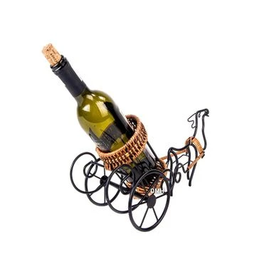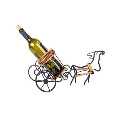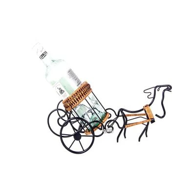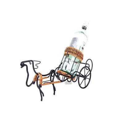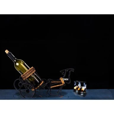 Present and deliver your fine wines with festive zest in the Moose-Drawn Sleigh Ride Wine Holder. Standing at 16.54 x 6.3 x 8.27 inches, this wine holder provides a delicately formed yet sturdy support for bottles of liquor. Present and deliver your fine wines with festive zest in the Moose-Drawn Sleigh Ride Wine Holder. Standing at 16.54 x 6.3 x 8.27 inches, this wine holder provides a delicately formed yet sturdy support for bottles of liquor. Handcrafted metal is complemented by rattan accents on the harness, rim, and base of the holder.