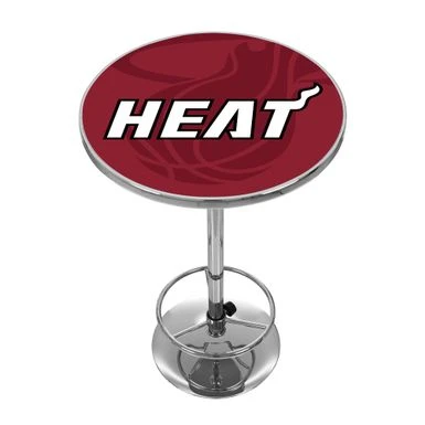 Elevate your game room or garage with this NBA Chrome Pub Table in Fade design. The table top can be customized with your preferred team logo and features a durable acrylic surface with a chrome finished plastic banding. The chrome base is lightweight yet sturdy, and comes with an adjustable footrest for maximum comfort. Perfect for game nights or casual hangouts, this pub table combines style, function, and comfort all in one.